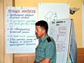 После того, как прозвучали приветственные выступления, открывающие семинар, присутствующим на нем в качестве слушателей офицерам пришлось немало потрудиться. Они обсуждали ряд вопросов, используя метод «мозгового штурма», выполняли упражнения как индивидуально, так и в составе малых рабочих групп, докладывали о результатах своей работы своим коллегам. В заключение каждая группа по своей теме подготовила и вынесла на обсуждение всей аудитории методический план проведения занятия с использованием предлагаемых в пособии «Вам выбирать» материалов и форм работы. Оценивая результаты работы семинара, а также подготовленные ИРИС печатные издания, большинство участников отметили большую практическую ценность такой работы, ведь часто офицерам-преподавателям ОГП приходится выполнять многочисленные дополнительные служебные обязанности, что оставляет не так много времени на подготовку к занятиям с солдатами и матросами. Наличие пособия и методических рекомендаций, полученные на семинаре навыки работы с ними помогут эффективнее работать с аудиторией как в процессе подготовки к выборам, так и в ходе работы по общественно-государственной подготовки в целом.