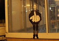 В Екатеринбурге уличные художники провели акцию "Встречаем Путина", приуроченную к приезду президента страны на саммит Россия - ЕС. Сообщение об этом, опубликованное на портале Ура.Ру, перепечатал ряд других изданий, в том числе Безформата.Ру. В ночь на вторник в разных частях городского центра появились изображения Путина примерно в половину натуральной величины. На всех изображениях президент держит перед собой раскрытый зонт с нарисованным неприличным жестом.