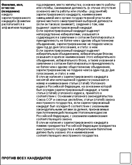 Текст избирательного бюллетеня печатается в одну краску черного цвета.