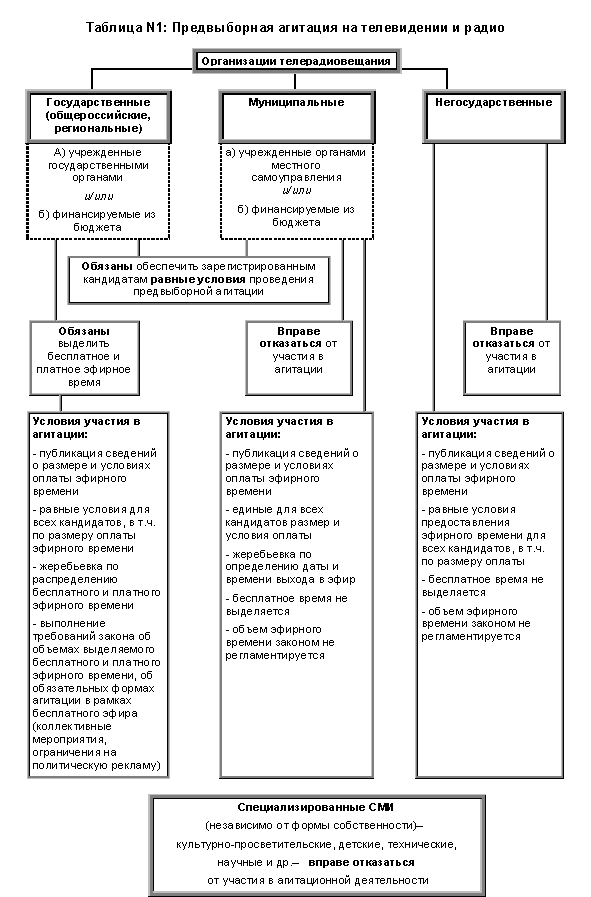 Таблица N 1: Предвыборная агитация на телевидении и радио