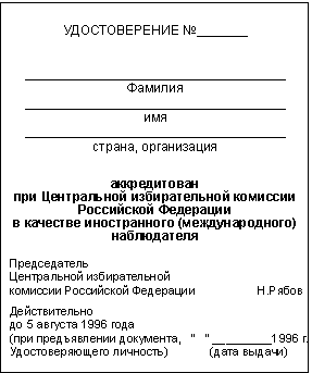 Удостоверение иностранного (международного) наблюдателя-документ, удостоверяющий его статус.